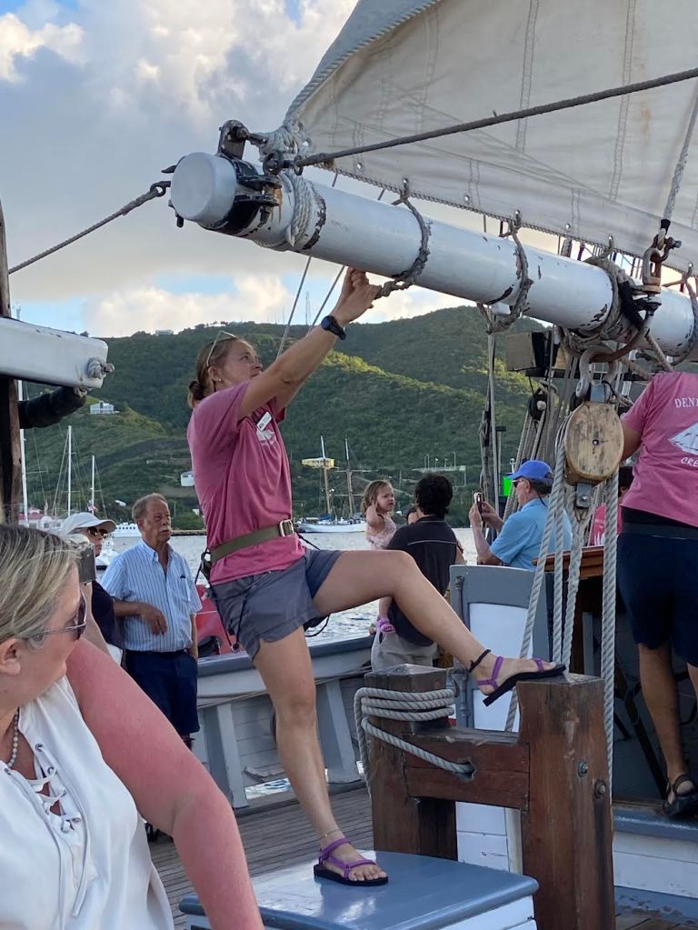 A mix of people—young and old—cruised on the Dennis Sullivan the day I was aboard. We novices were invited to help raise the sails and it was hard not to picture old-time sailors or even the pirates who once traveled the waters of the Caribbean as we cruised off the St. Croix coast. The lifestyle of those ancients seagoers was no doubt physically daunting, one that required teamwork and resilience, skills that young modern sailors can acquire by just stepping on board.
